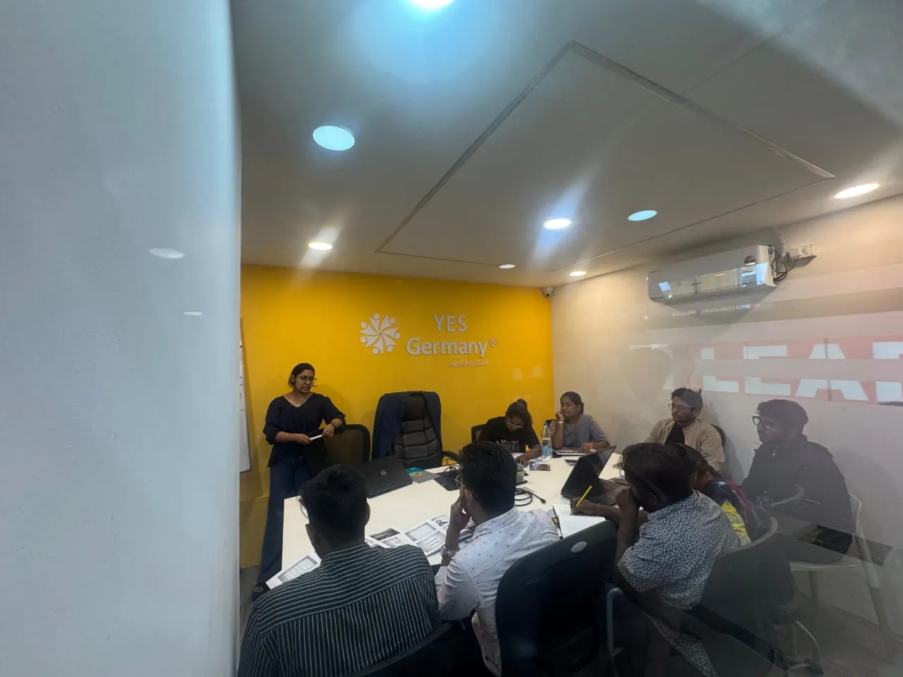 Students attending offline German class
